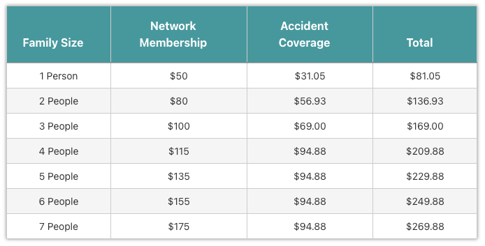Family Size Network Membership Accident Coverage Total
